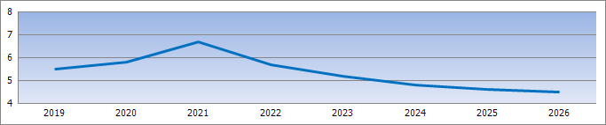 5,5 | 5,8 | 6,7 | 5,7 | 5,2 | 4,8 | 4,6 | 4,5 |