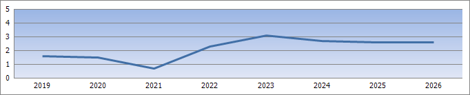 1,6 | 1,5 | 0,7 | 2,3 | 3,1 | 2,7 | 2,6 | 2,6 |