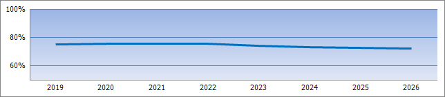 75,3% | 75,5% | 75,7% | 75,7% | 74,1% | 73,5% | 73,0% | 72,5% |