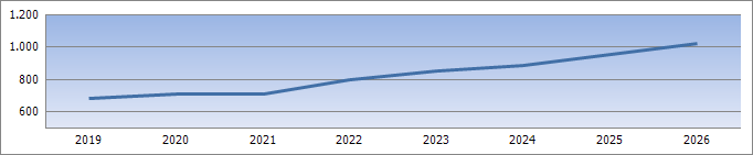 721 | 755 | 755 | 838 | 907 | 964 | 1030 | 1100 |