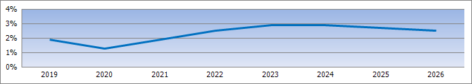 1,90% | 1,30% | 1,90% | 2,50% | 2,90% | 2,90% | 2,70% | 2,5% |