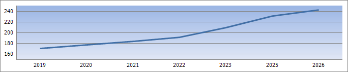170,4 | 177,8 | 183,8 | 191,5 | 209,7 | 220 | 231 | 242 |
