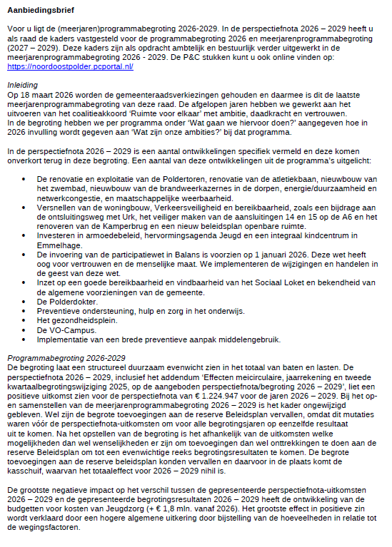Financieel meerjarenperspectief 2026-2029