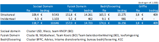 Daarom, conform toezegging, onderstaand het overzicht waarbij duidelijk is waar sprake is van de inzet van structurele formatie en incidentele formatie als totaal, om zo de raad inzicht geven in de hoofdlijnen.